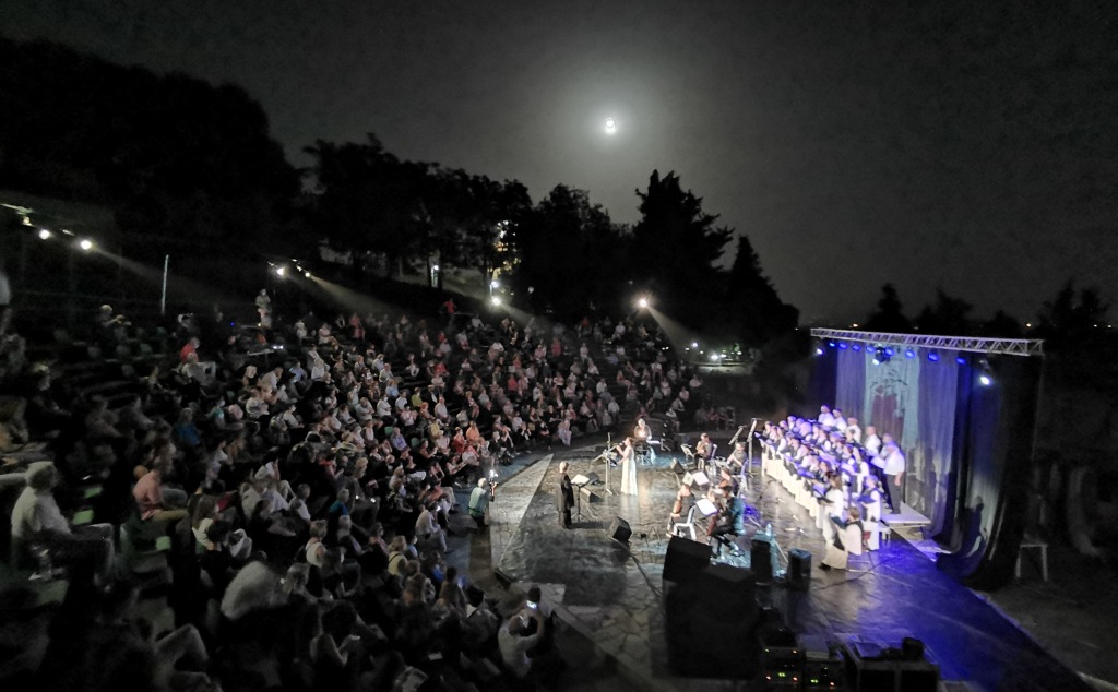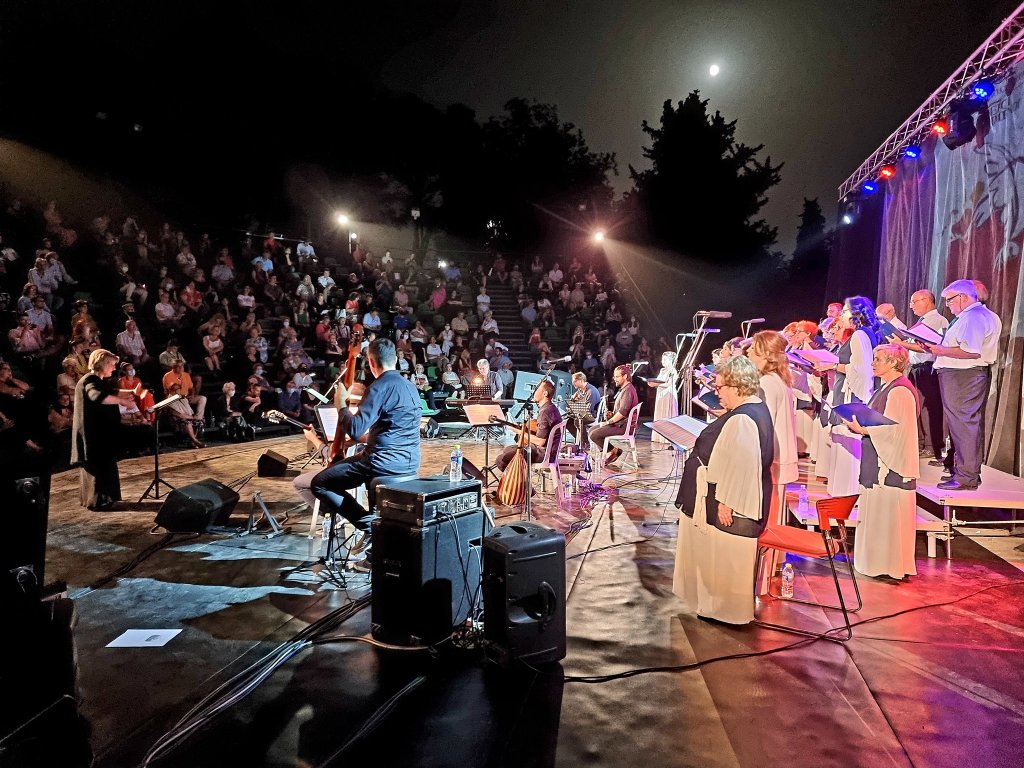 Η Τερψιχόρη Παπαστεφάνου και η φημισμένη Χορωδία Τρικάλων, η εξαιρετική πρωτοβουλία του Δήμου Τρικκαίων να τιμήσει την πρωτοπόρο της χορωδιακής μουσικής στην Ελλάδα, η υπερπανσέληνος του Ιουνίου και η δίψα του τρικαλινού κοινού για μουσική παράσταση – μετά από τόσον καιρό – συνέθεσαν ένα μαγευτικό παζλ στο Υπαίθριο Δημοτικό Θέατρο του Φρουρίου.