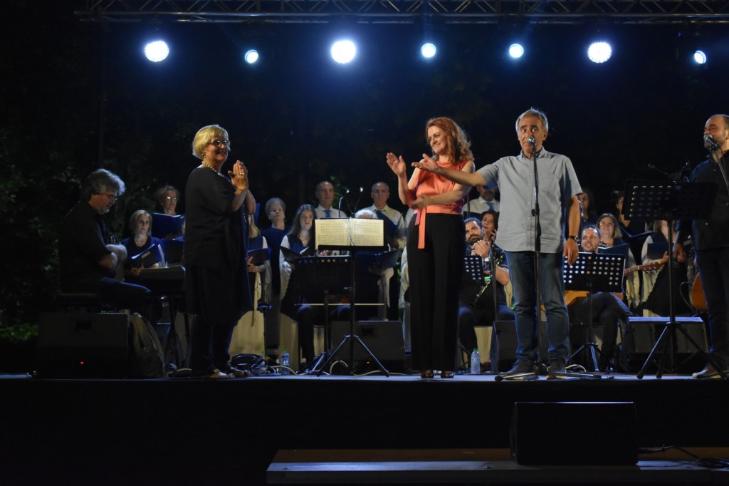 Η Χρυσή (Σίσσυ) Παπαγιαννούλη, ο Κώστας Οκκας, η Δημοτική Χορωδία Τρικάλων υπό τη διεύθυνση της μαέστρου Ελένης Ζιάκα και λαϊκή ορχήστρα από τρικαλινούς μουσικούς σε ενορχήστρωση Σάκη Κοντονικόλα,, απέδωσαν τις γνωστές, πάντα αγαπημένες και συνθέσεις του Μίκη Θεοδωράκη, με ή χωρίς πολιτικό χαρακτήρα.