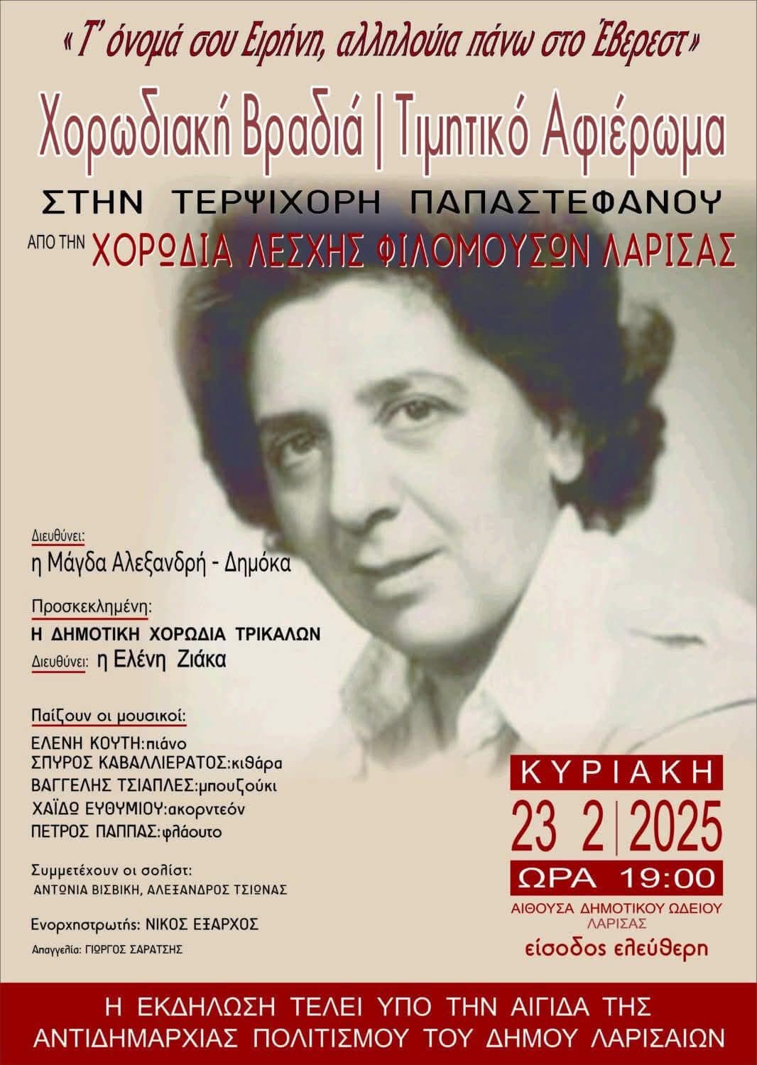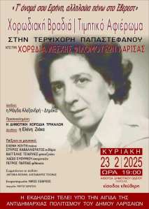Με τη Δημοτική Χορωδία Τρικάλων τιμάται και στη Λάρισα η Τερψιχόρη Παπαστεφάνου