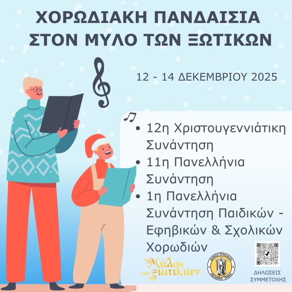 Οι συναντήσεις των χορωδών από όλη τη χώρα θα πραγματοποιηθούν από τις 12 έως τις 14 Δεκεμβρίου 2025, στον Μύλο των Ξωτικών, στα Τρίκαλα.